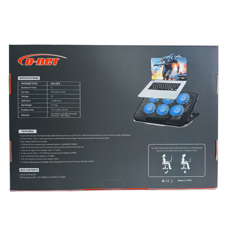 خروجی USB , پد ضد لغزش , قابلیت تنظیم ارتفاع , قابلیت تنظیم زاویه , نورپردازی , کلید روشن/خاموش , تنظیم میزان پرتاب باد