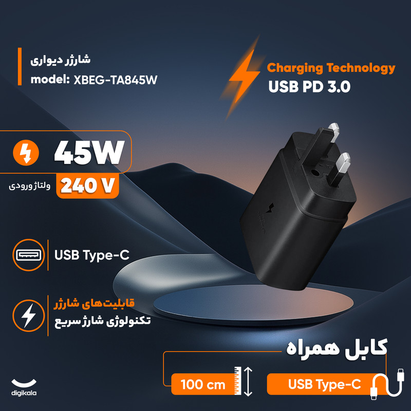 دستهبندی: لوازم جانبی گوشی موبایلبرچسبها : 45وات، شارژر سامسونگ، شارژر، 45نوع اتصال: Type-Cاتصال شارژر: 3 پین